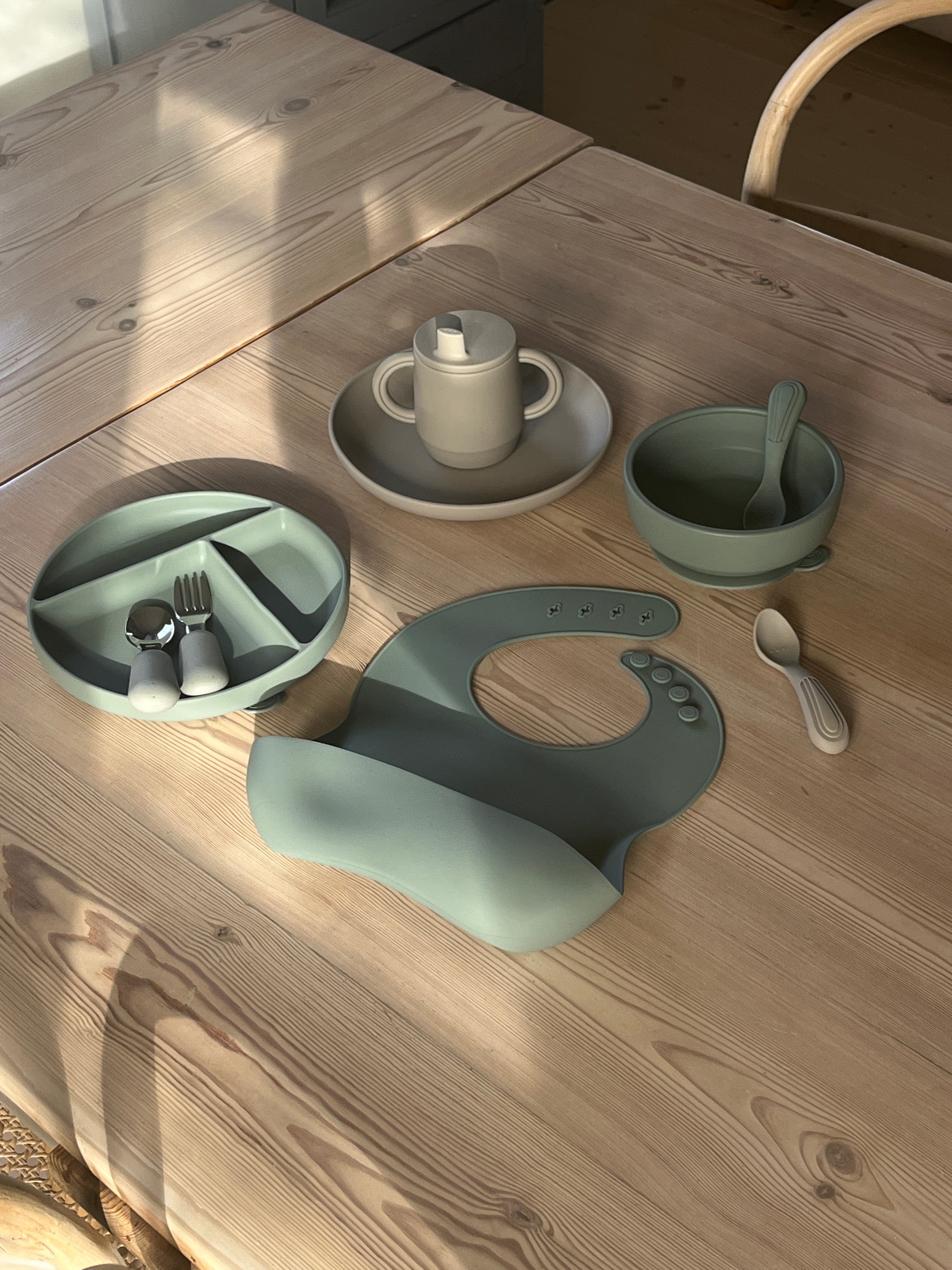 Alla delar i vår barnservis kommer i fina matchande färger, så kolla in våra barnbestick, haklappar och pipmuggar som vi tror kan passa fint till våra barntallrikar.