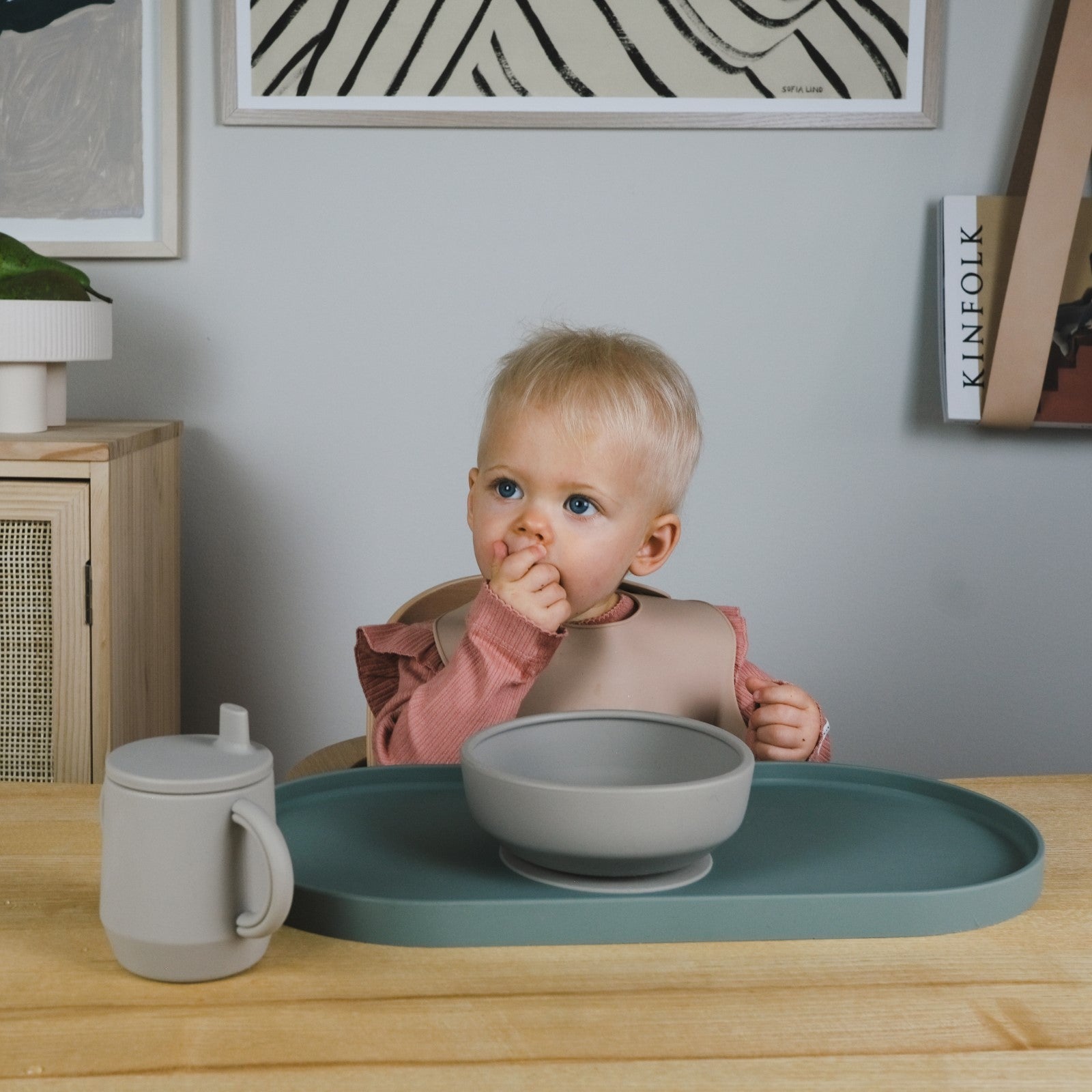 Som föräldrar vet vi hur verkligheten ser ut vid matbordet. Vårt underlägg är skapat för att göra vardagen lite enklare. Det fungerar som bricka, tallrik och underlägg i ett, med upphöjda kanter som håller maten på plats och fångar upp spill när barnet utforskar nya smaker.